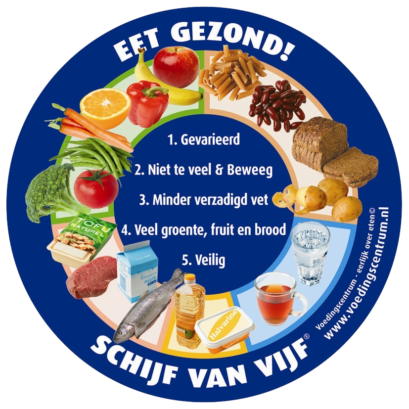 Wij zorgen ervoor dat zij zoveel mogelijk voedingsstoffen binnen krijgen. Deze voedingsstoffen heeft het lichaam dagelijks nodig, om zo goed mogelijk te kunnen functioneren. Wij leren de kinderen omgaan met gezonde voeding aan de hand van de Schijf van Vijf.
